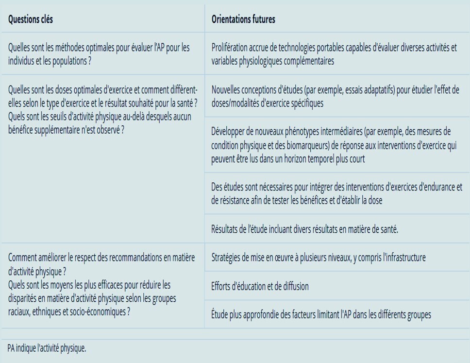 - L'évaluation de l'activité physique devrait devenir une pratique courante dans les soins cliniques pour prévenir les maladies chroniques.